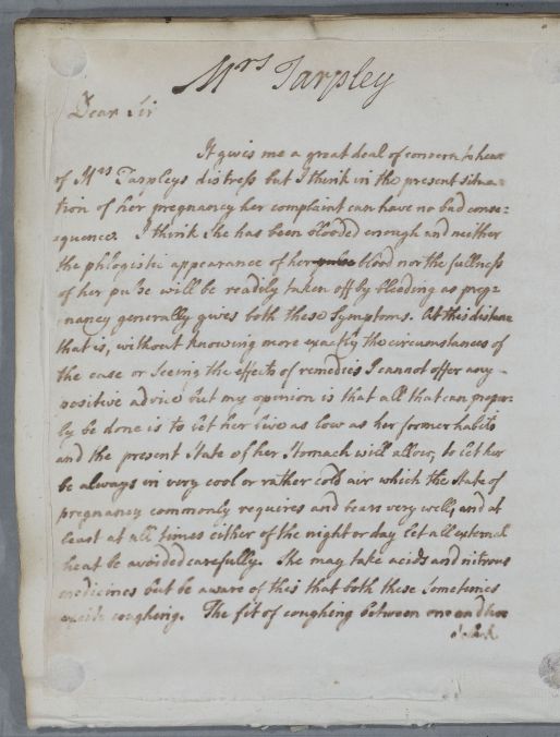 | Summary | Letter concerning Mrs Tarpley, who is suffering from illness during her pregnancy. |