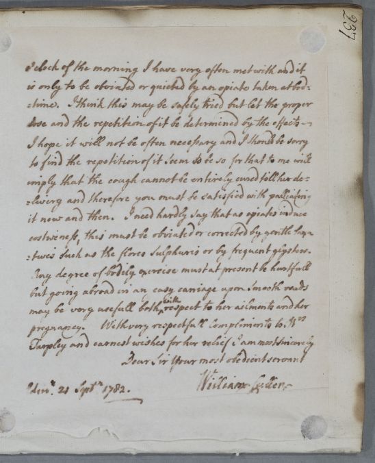 [ID:639] From: Dr William Cullen (Professor Cullen) / To: Anonymous / Regarding: Mrs Tarpley (Patient) / 21 September 1782 / (Outgoing)