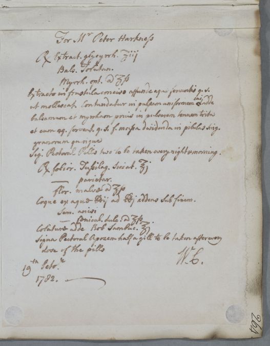 | Summary | Directions for Mr Peter Harkness, whose case has been drawn up by Mr [Yestour?]. Instructions are largely dietary, beginning with a course of asses' milk. |