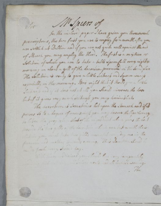 [ID:664] From: Dr William Cullen (Professor Cullen) / To: Mr Spiers (Speirs) / Regarding: Mr Spiers (Speirs) (Patient) / 9 November 1782 / (Outgoing)