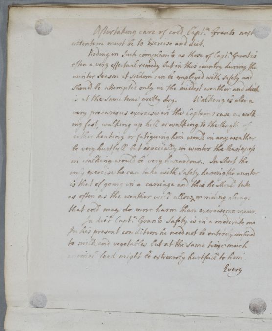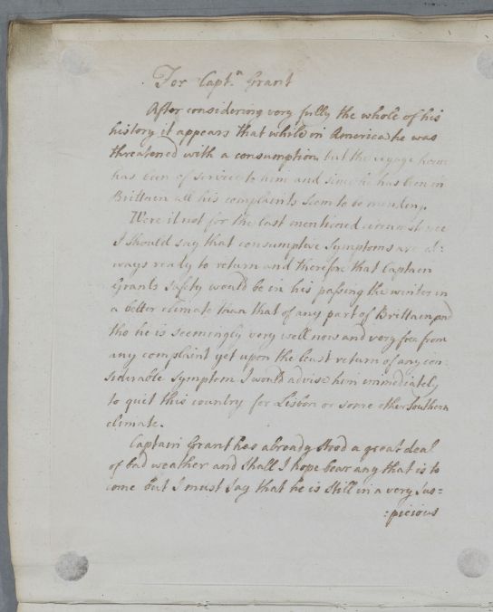 [ID:666] From: Dr William Cullen (Professor Cullen) / To: Dr Thomas Stephen / Regarding: Captain Grant (Patient) / 11? November 1782 / (Outgoing)