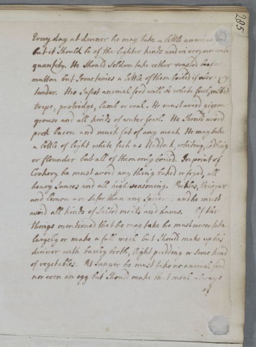 tripe, partridge, lamb or veal. He must avoid pigeon