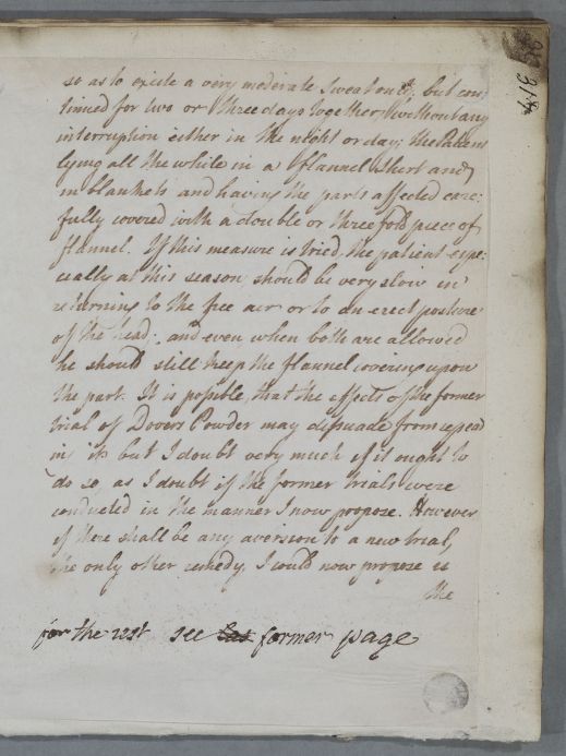 | Summary | Reply regarding the treatment of Mr. J. B., whose case Cullen believes to have been 'brought on by a general rheumatic Diathesis', but to be now' very much a local affection of the Muscles employed in keeping the head and neck erect'. |