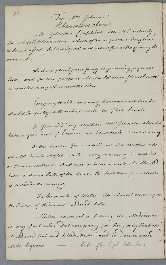 Case of Mrs Johnston who has chronic rheumatism and is prescribed diaphoretics. |