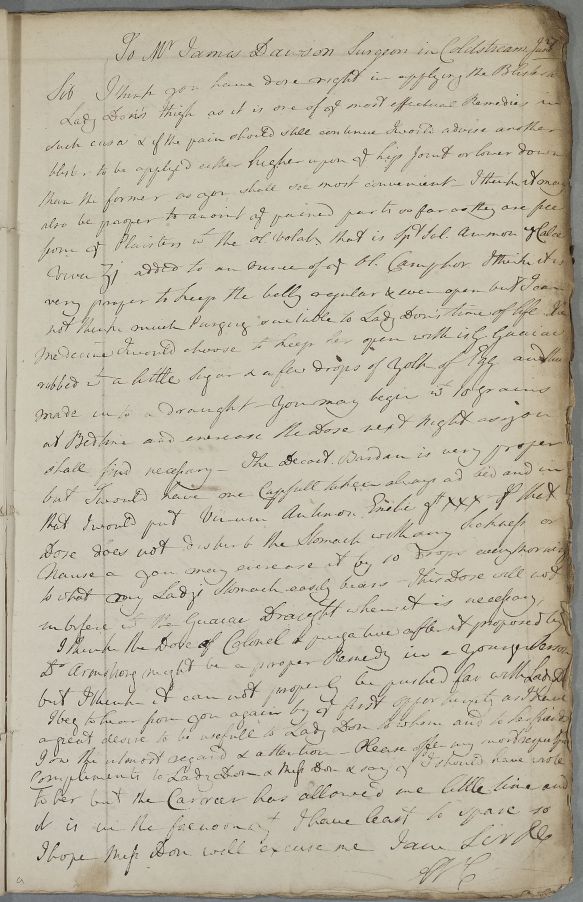 | Summary | Reply, 'To Mr James Davison Surgeon in Coldstream', concerning the case of Lady Don. |