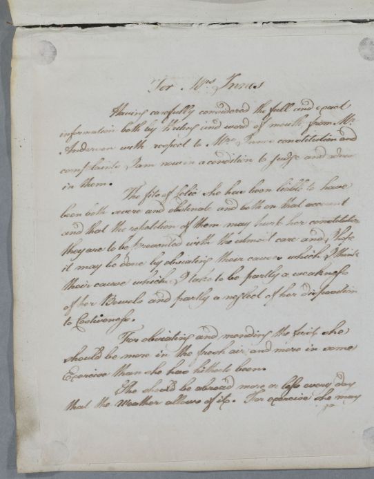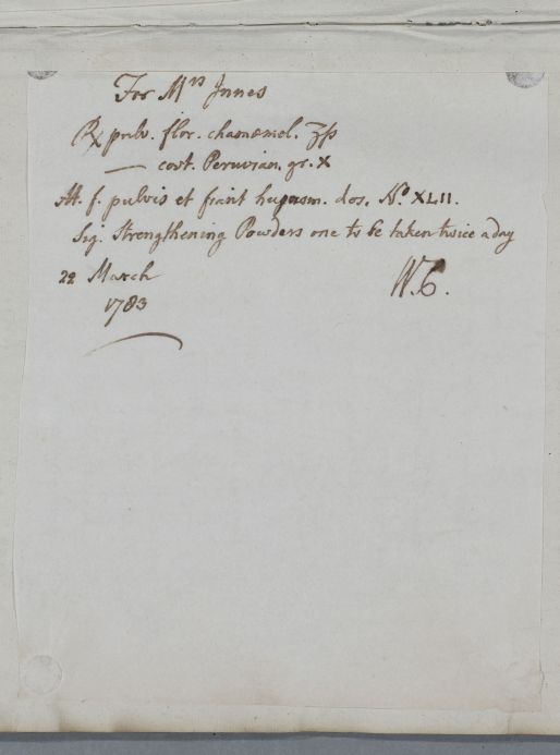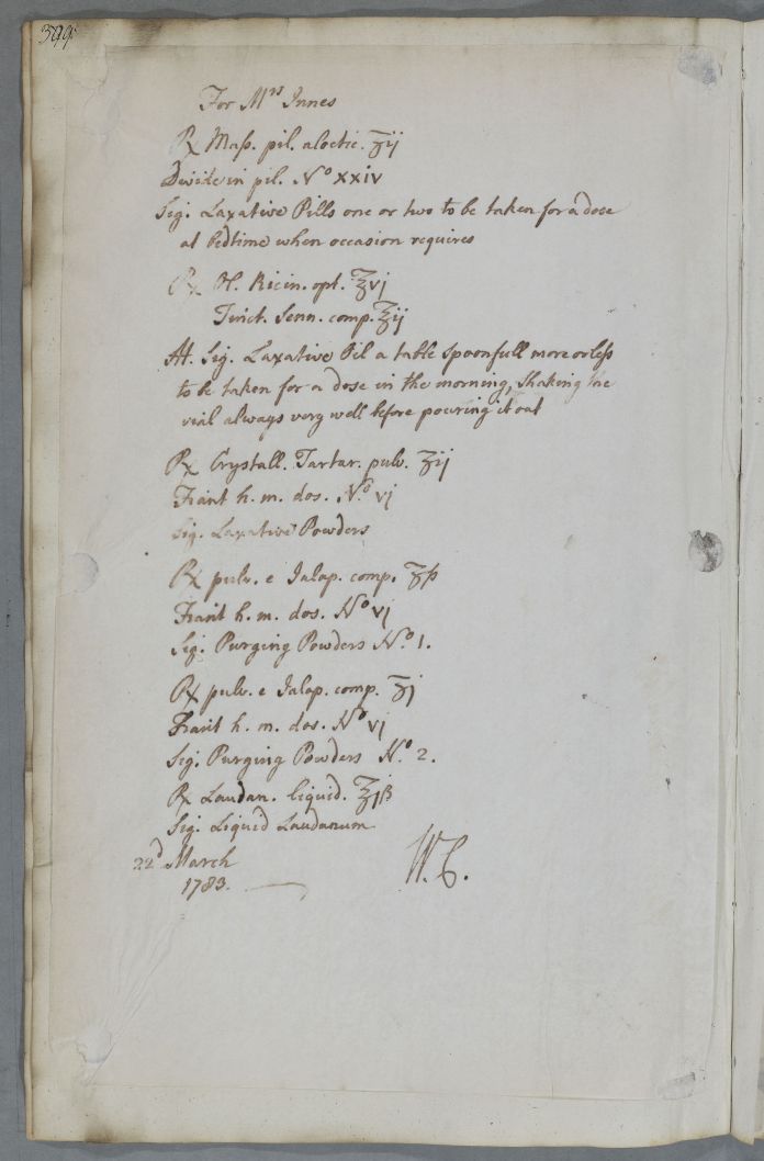 [ID:727] From: Dr William Cullen (Professor Cullen) / To: [ADDRESSEE UNKNOWN] / Regarding: Mrs Innes (Patient) / 22 March 1783 / (Outgoing)