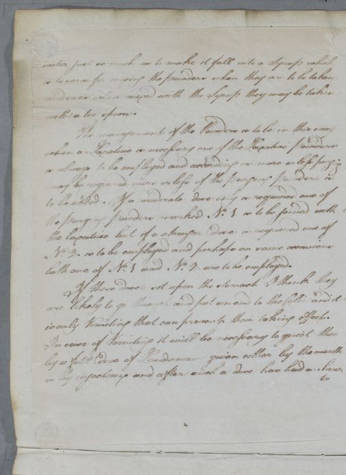 Take half a drachm of powdered Jalappa compound. In this way, let there be made a dose of six. Label: Purging Powders No 1.