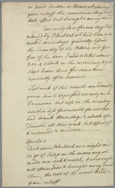 | Summary | Lengthy letter from John, 2nd Earl of Hopetoun, describing his symptoms in the form of a diary. He mentions that he 'had not got quite free of the Cough and other effects of the Epidemic, besides the other complaints of Lowness and Oppression'. |