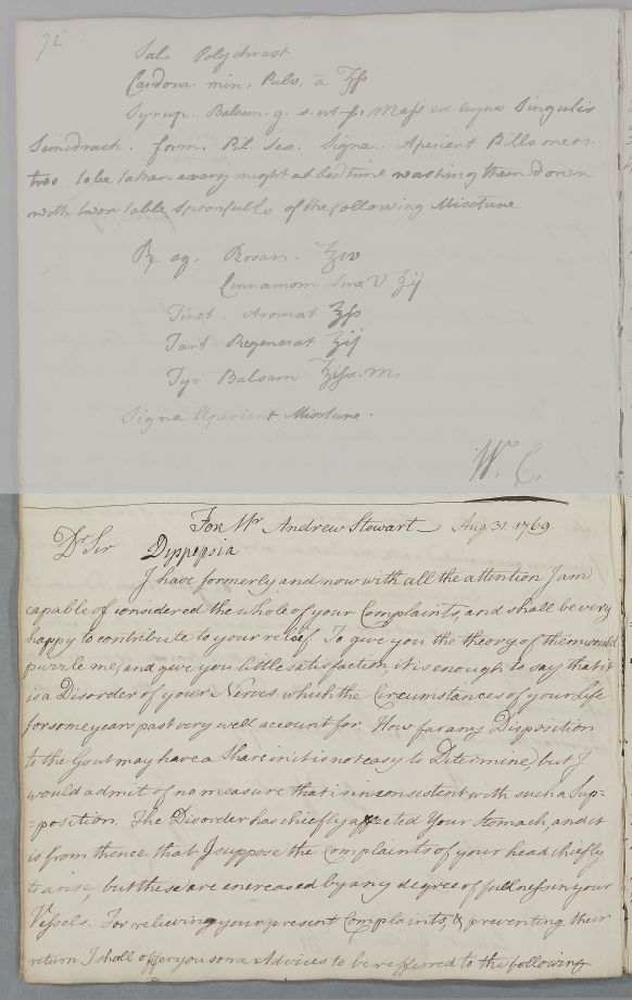 [ID:75] From: Dr William Cullen (Professor Cullen) / To: Mr Andrew Stewart / Regarding: Mr Andrew Stewart (Patient) / 31 August 1769 / (Outgoing)