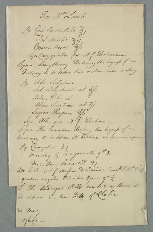 [ID:761] From: Dr William Cullen (Professor Cullen) / To: [ADDRESSEE UNKNOWN] / Regarding: Mrs Lamb (Patient), Miss Lamb (Lamb) (Patient), Miss Lamb (Lamb) (Patient) / 21 May 1764 / (Outgoing)
