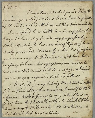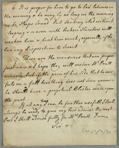 | Summary | Reply, in the form of a retained loose, neat draft in Cullen's hand, to a Mr Pratt, regarding the case of his son and briefly mentioning that of his wife. Cullen gives directions for the son (who is consumptive), and says that directions for the wife will follow in next post. Date is inferred from that of the follow-up letter concerning Mrs Pratt. |