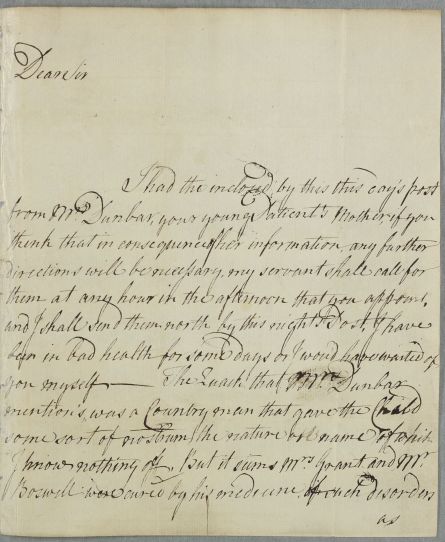 | Summary | Letter from Alexander Campbell. Covering letter for an enclosed letter from Sophia Dunbar which follows as letter 812. |