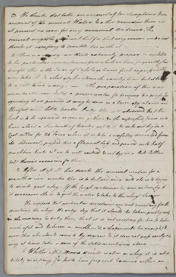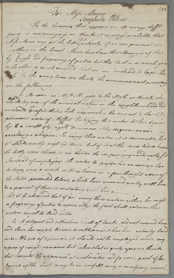 Case of Miss Munro who has a chest complaint and 'tumours' who is given directions on taking the waters at Moffat. |