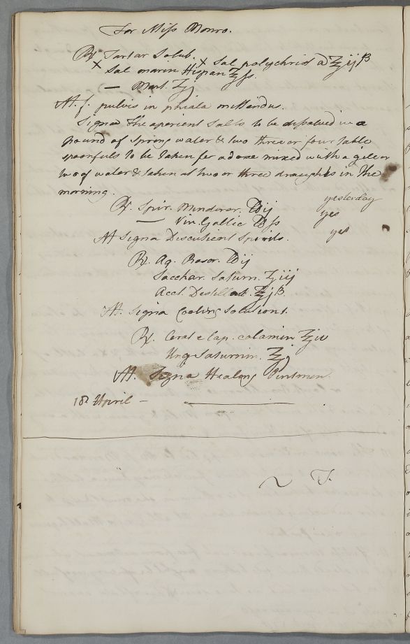 ℞ Spir. minderer. lib ij [Start of margin text]yesterday[End of margin text]