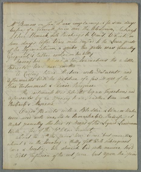 | Summary | Letter from Alexander Molison regarding the case of Mrs Anne Burrow, who has been suffering from vomiting and pains in her abdomen. |