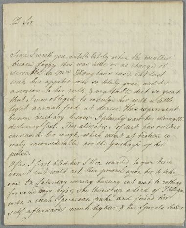 Case of Miss Amelia Clephane who in late-1779 is thought to have a temporary 'affection of the stomach and nerves'; in 1783 Cullen detects no particular disorder, but provides a regimen to manage her 'weak nerves'. |