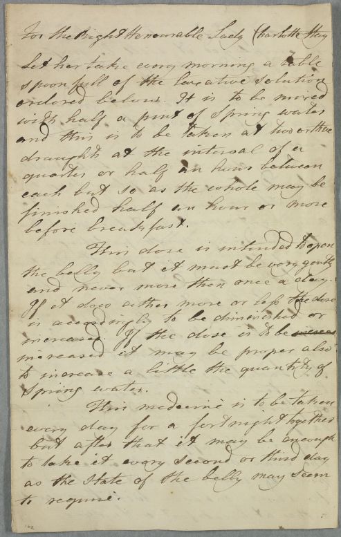 | Summary | Reply, in form of directions for the Right Honourable Lady Charlotte Hay and with recipes, one for Lady Henrietta Hay. |