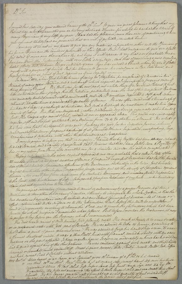 In Decemr. 1772, when I first had the honour of seeing Mr Stapleton, he complained of a Disorder in his