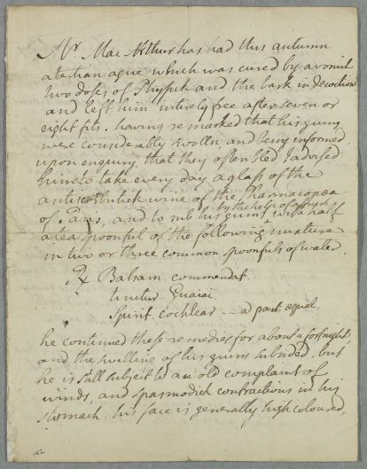 Case of Mr MacArthur [McArthur] in Paris who has a 'tertian ague'. |