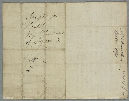 [ID:921] From: Dr John MacMahon (Jean-Baptiste de MacMahon, Marquis de MacMahon, Marquis d'Eguilly) / To: [ADDRESSEE UNKNOWN] / Regarding: Mr McArthur (Patient) / 25 October 1774 / (Incoming)