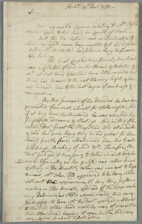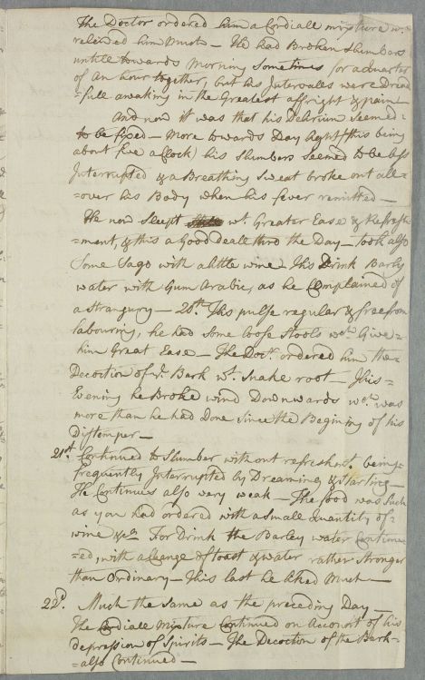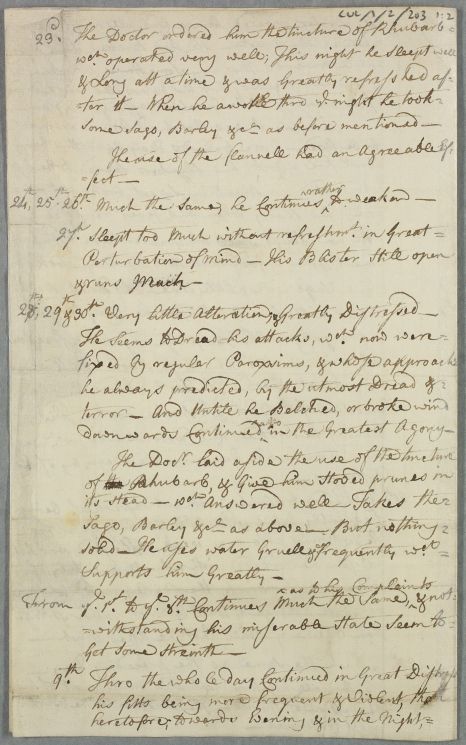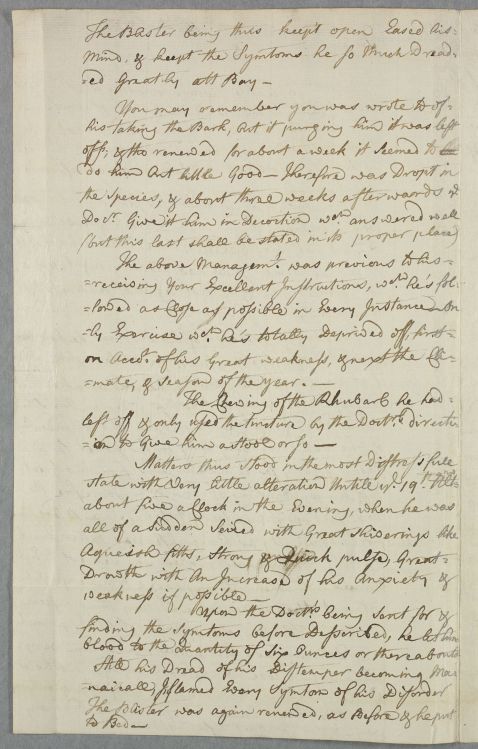 | Summary | Letter from James Fea on the case of Andrew Ross, who is delirious and suffers attacks of pain but whose condition seems to be improving. Gives a diary of the progress of the illness and course of treatment. |