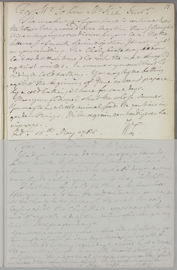 [ID:961] From: Dr William Cullen (Professor Cullen) / To: Mr John McKie (Junior) / Regarding: Mr John McKie (Junior) (Patient) / 15 May 1780 / (Outgoing)