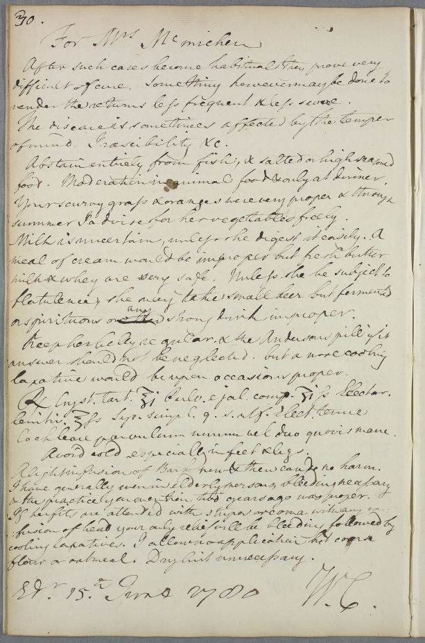 [ID:979] From: Dr William Cullen (Professor Cullen) / To: Mr John Bannerman / Regarding: Mrs McMichen (McMiken) (Patient) / 15 June 1780 / (Outgoing)