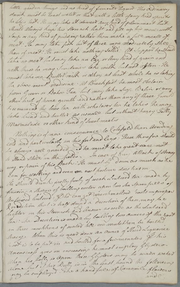 | Summary | Reply 'For Alexander Montgomery of Colsfield'. Contains dietary recommendations and an English recipe for different marshmallow, linseed and camomile decoctions to treat Mr Montgomery's nephritic complaints (which were later confirmed gallstones). |
