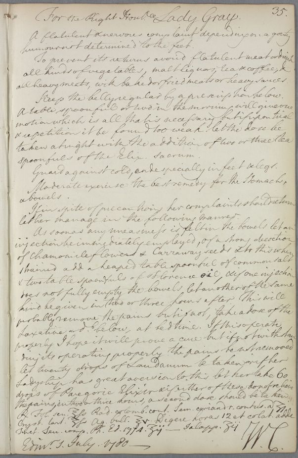 [ID:983] From: Dr William Cullen (Professor Cullen) / To: Dr Robert Wood / Regarding: Lady Margaret Gray (Blair) (Grey; Honble Lady Gray) (Patient) / 1 July 1780 / (Outgoing)